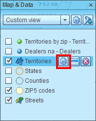 - Move mouse pointer over territory layer name and click gear icon that will appear.